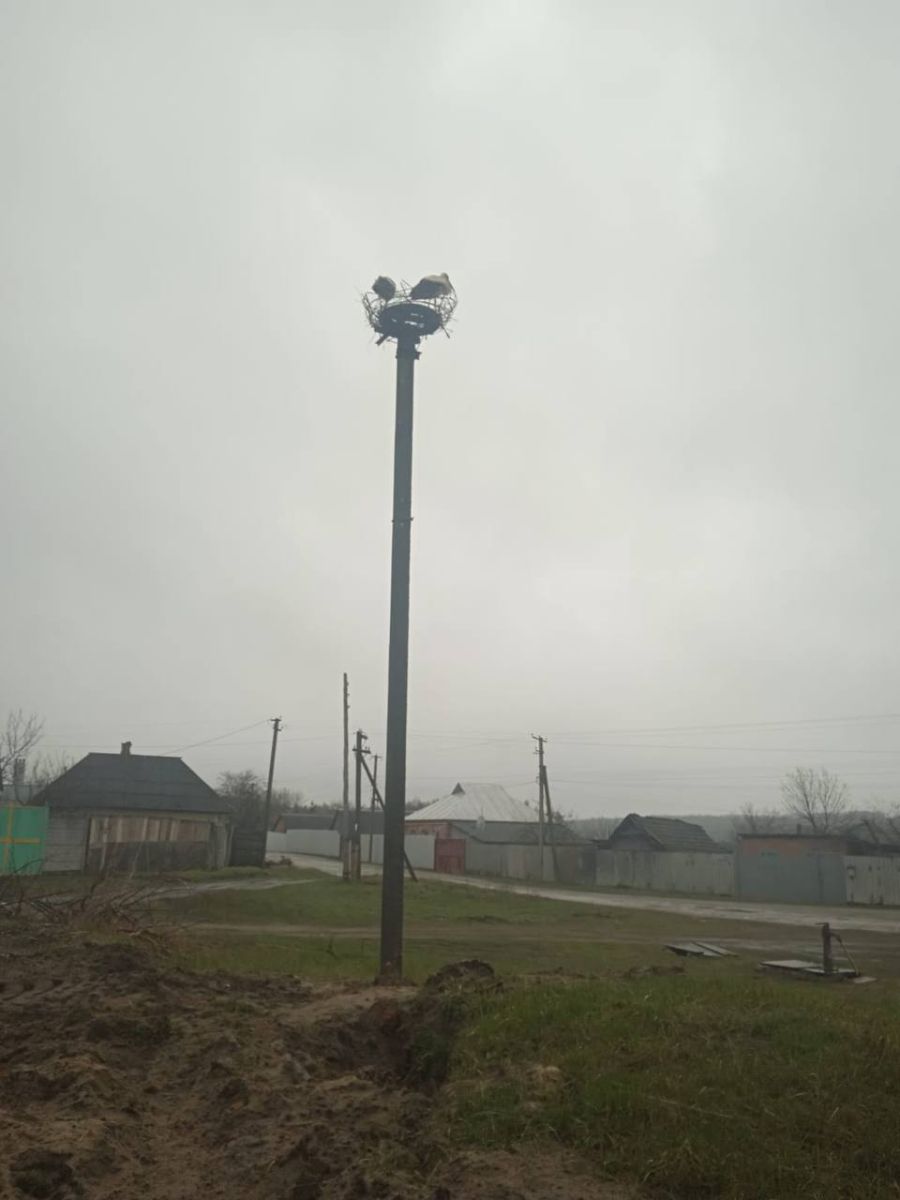 Фото: На основній світлині, зробленій сьогодні, 10 квітня,  - та сама нова підпора, яку вже почали освоювати  лелеки.
